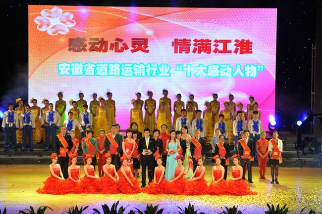 會議期間舉辦了"十一五"期間全省道路運輸行業(yè)"十大感動人物"頒獎晚會,運用視頻短片等形式對獲獎?wù)叩南冗M事跡進行了宣揚,F(xiàn)場群眾觀看著大屏幕上獲獎?wù)叩母腥耸论E,聆聽著獲獎?wù)叩臉銓嵲捳Z,一次次用雷鳴般的掌聲表達了敬佩和感動之情。他們的典型事跡,集中展示了道路運輸人的風(fēng)采,唱響了時代的主旋律,在群眾中引起了強烈的共鳴。省交通運輸廳梅勁廳長、丁慶領(lǐng)副廳長及滁州市相關(guān)領(lǐng)導(dǎo)為"十大感動人物"頒發(fā)了獎杯。